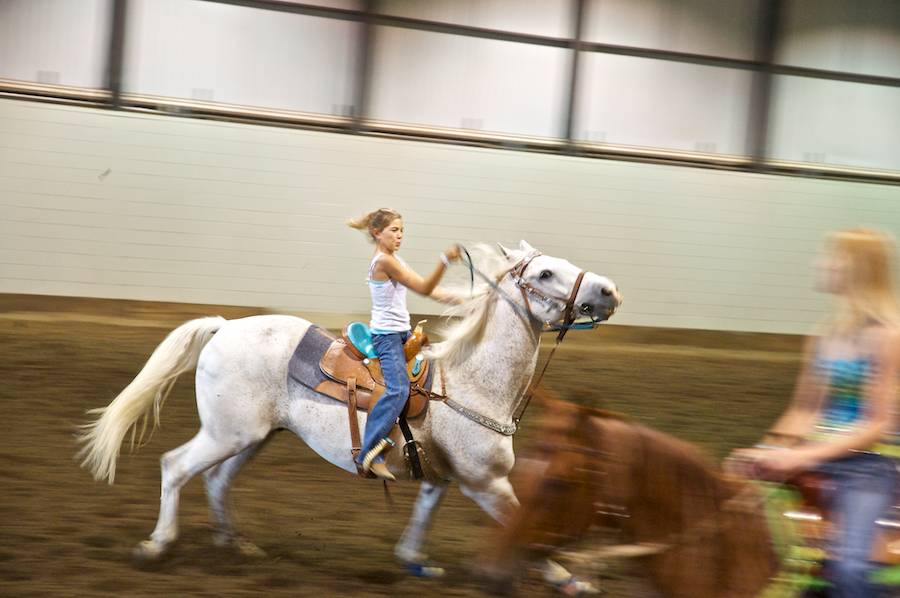 Caption: barrel racing at State Fair
