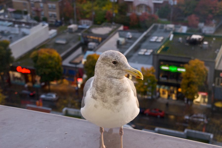 Caption: My pet seagull. He came to visit often - especially at mealtimes.